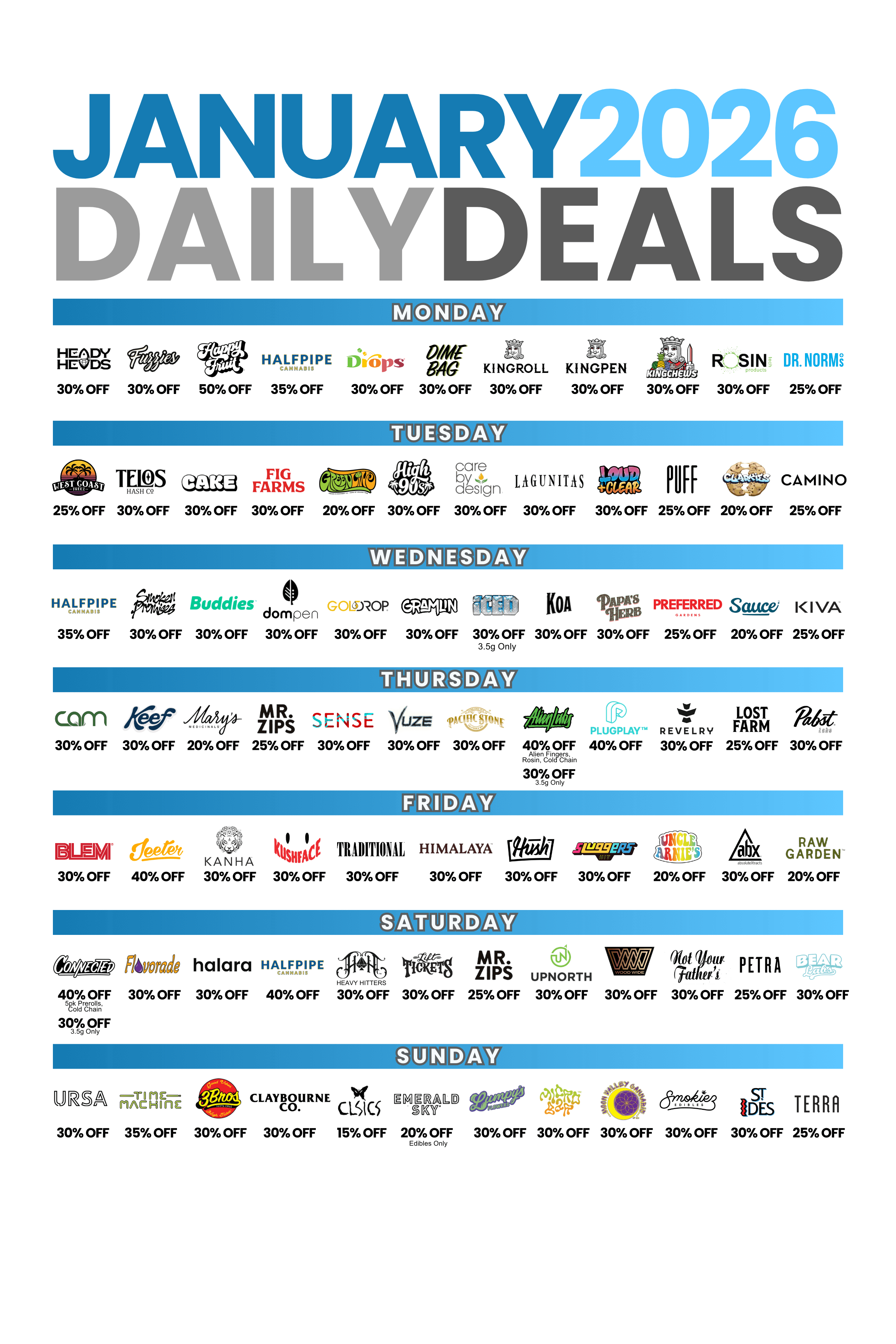 Enjoy exclusive daily discounts on top cannabis brands. Check out our rotating deals and save big on your favorite products!